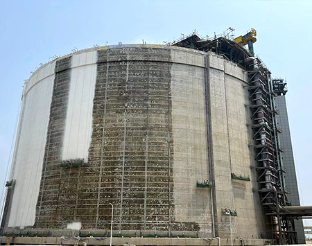 北燃天津南港LNG應急儲備項目的薄膜型LNG儲罐是目前全球最大的陸上LNG薄膜罐,是為北京市提供安保用氣、加速京津冀一體化的重點項目,我司承攬此項目二、三階段共計六臺薄膜罐的防潮層施工工作